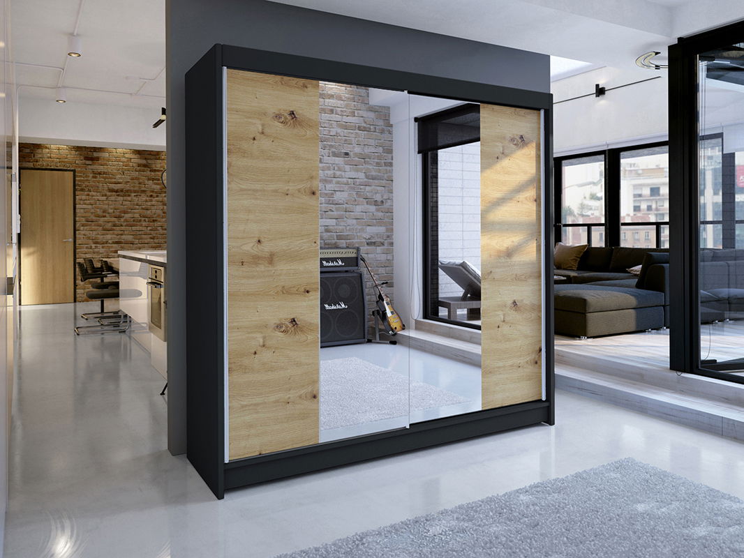 Šatníková skříň Tatiana 2 (černá + artisan)