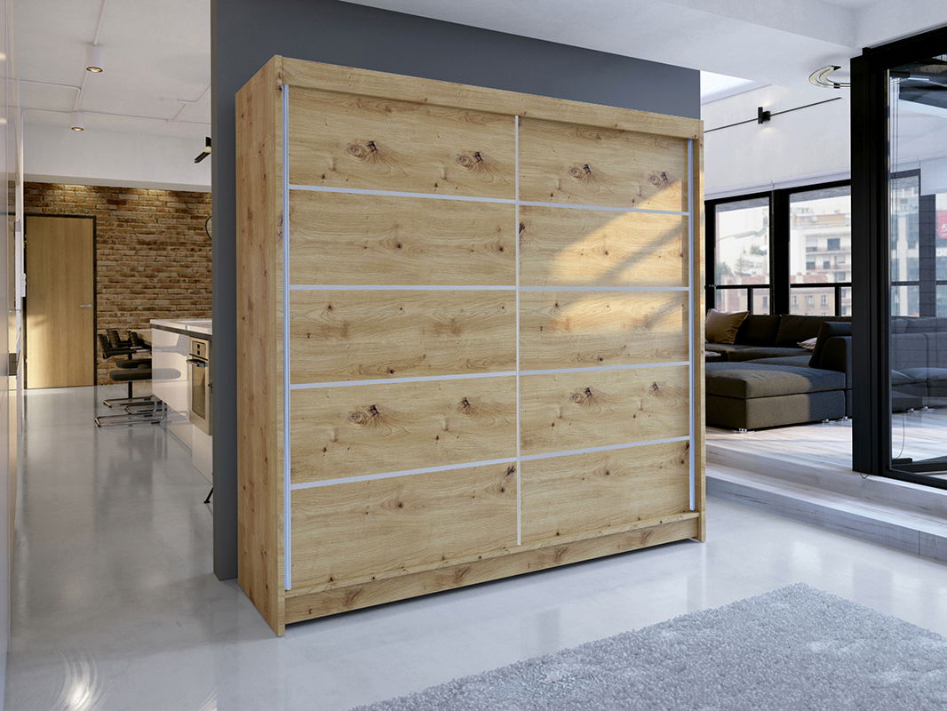 ZobrazitHledáte šatní skříň, která bude vynikat svojí kapacitou a stylovým designem? Skříň Tatiana je tou pravou pro vás! Rozměry nábytku jsou až 215 x 180 x 58 cm, což znamená, že do šatníku vejdete oblečení na každé roční období. Dveře šatníku jsou pokryty dřevotřískou s povrchovou úpravou. Vnitřek skříně se skládá z polic a závěsných tyčí. Skříň disponuje také přitažlivou barevnou kombinací a zajímavým designovým řešením. Tato řešení vám umožní vytvořit klidnou a harmonickou atmosféru v místnosti.