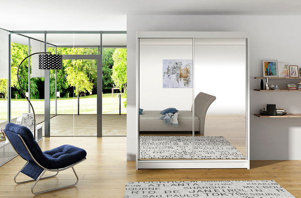 Šatní skříň Vance je novinkou mezi posuvnými skříněmi. Je vyroben z laminované nábytkové desky. Pohodlný přístup k šatní skříni zajišťují bezúchytkové posuvné dveře. Šatní skříň využívá posuvný systém otevírání dveří, který nezasahuje do prostoru. Šatní skříň je dostupná v několika barevných variantách a výrazným zrcadlem, které opticky zvětší váš interiér. Vnitřek skříně obsahuje police a závěsné tyče, abyste co nejlépe využili prostor vašeho šatníku.
