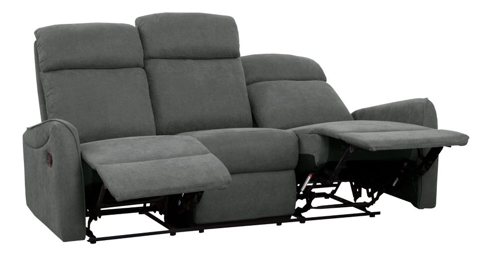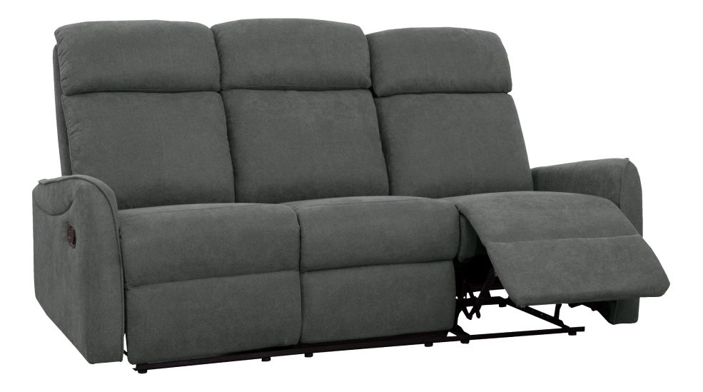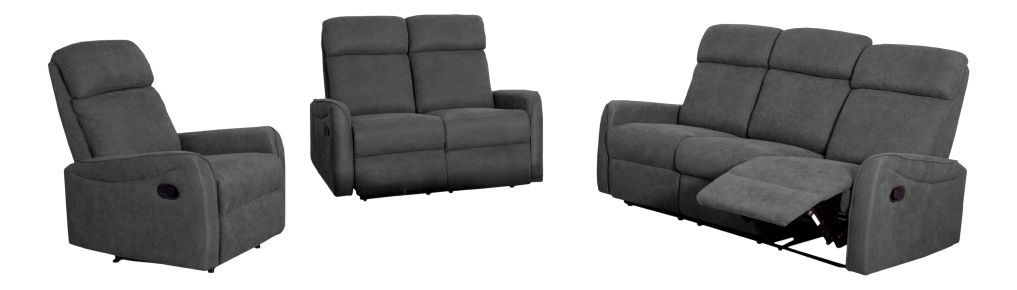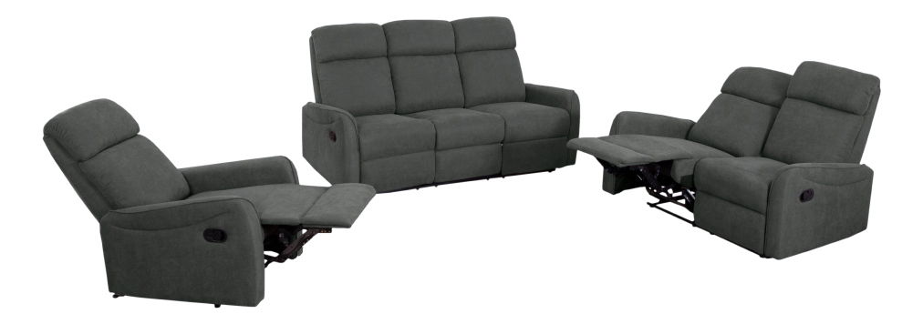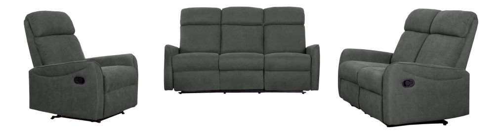 Pocit pohodlí a komfortu? Sedací sestava Fotron nabízí dokonalé místo k odpočinku přímo u vás doma. Složená je z trojsedu, dvousedu a křesla v nestárnoucím barevném provedení tmavě šedá. Trojsed disponuje funkcí polohování levé a pravé části a střední část je pevná. Dvojsed tvoří dvě křesla, která lze polohovat nezávisle na sobě. Funkcí polohování disponuje samozřejmě také křeslo. Podnož vysunete pomocí páčky na boční straně křesla. Opěradlo sklopíte jemným potlačením dozadu. Když opět zatlačíte, opěradlo se vrátí do původní polohy. Podnož sklopíte tak, že do ní zatlačíte nohama. Dřevěná konstrukce sestavy Fotron je vyrobena z eukalyptu. Sedací část je vyplněna PUR pěnou.