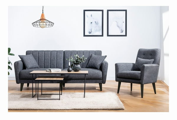 Sedací souprava 3+1 - Acanti (Antracit) je vysoce kvalitní nábytek, který se skvěle hodí do vašeho interiéru. S výškou 90 cm, šířkou 205 cm a hloubkou 80 cm poskytuje pohodlné a prostorné místo k sezení. Tento nábytek je vyroben z odolného materiálu a má moderní antracitový odstín, který se hodí do každé místnosti. S jedním třísedem a jedním křeslem je tato sedací souprava ideální pro relaxaci a pohodlí po náročném dni. Dopřejte si luxusní a elegantní kousek nábytku, který dodá vašemu domovu stylový vzhled.