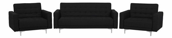 Tato moderní sedací souprava, která se skládá z třímístné pohovky a dvou křesel, se stane pohodlným středem vašeho obývacího pokoje. Je čalouněna velmi kvalitní grafitovosivou látkou s elegantním prošíváním a nabízí funkčnost a nadčasový design. Díky modulárnímu designu ji lze uspořádat různými způsoby a vytvořit si sedací sestavu šitou na míru. Všechny kusy mají nastavitelná opěradla, která lze sklopit. Celá sestava je stabilní díky kovovým nohám.