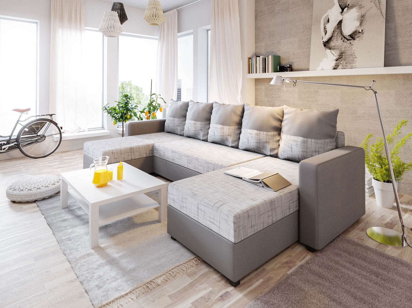 ZobrazitModerní sedačka Adrait U přinese do vašeho obývacího pokoje pohodlí. Působí stylově a moderně. Tato sedačka má unikátní designový prvek. Je jím 5 oboustranných polštářů, přičemž na každé straně mají jiný motiv. Díky tomuto prvku můžete jednoduše změnit vzhled vašeho obývacího pokoje. Sedačku lze pohodlně rozložit.