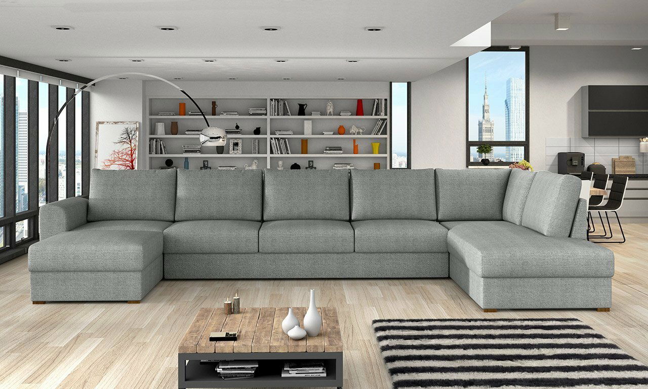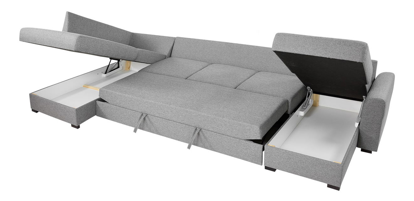 ZobrazitPokud patříte k těm šťastlivcům, kteří se těší z prostorného obývacího pokoje, bude pro Vás rohová sedací souprava jako stvořená! Sedačka Vám poskytne nejen spoustu prostoru k sezení a odpočinku, ale v případě potřeby lze i rozložit a vytvoříte tak plochu na spaní. Sedací souprava má funkci rozkladu a prostorné úložné prostory, které jsou vhodné pro uschování ložního prádla a jiných doplňků. Rohová sedací souprava má tvar „U“ a umožňuje jednodušší komunikaci osob, které jsou naproti sobě. Další výhodou sedací soupravy je, že jej můžete umístit kdekoli v místnosti – jde o volně stojící model, jehož zadní část je čalouněna výlučně čalouněným materiálem. Sedací souprava je vyrobena z kvalitních a odolných materiálů, které zaručí dokonalý vzhled a dlouhou životnost po celá léta.