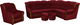 Rohová sedací souprava univerzálního vyhotovení Baron tvoří elegantní celek zajímavý svým zdobením dřevem Rustikal použitým na opěrkách, přední části područek a přední části sedáku. Barevné provedení je 3749 bordó. Sedačka má úložný prostor. Sedák je vyroben z pružiny bonel, čímž je zaručen komfort měkkého sezení a tvarová trvanlivost sedačky. Sedačka je rozkládací a rozměr ložné plochy po rozložení bude 200 cm délka a 125 cm šířka. V soupravě se nacházejí 2 taburetky s válcovým tvarem a také jedno křeslo, které má pod sedákem úložný prostor.