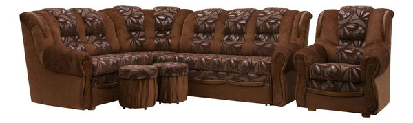 Sedací souprava Cezar Roh+K+2T (L) (s křeslem a taburetmi)