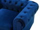 Tato sedací souprava se vyznačuje elegantní siluetou se širokými zaoblenými rameny, která je charakteristická pro design Chesterfield a hodí se do každého moderního nebo tradičně zařízeného interiéru. Nízké opěradlo, tlusté čalouněné sedátko a nohy z kaučukového dřeva nabízejí ten nejlepší komfort a stabilitu. Díky snímatelným potahům na polštářích je čištění případných skvrn jednodušší. Modré sametové čalounění je zvýrazněno klasickým prošíváním a knoflíky. Tato anglická klasika se snadno udržuje a bude vypadat úžasně v tradičně zařízeném nebo moderním interiéru.