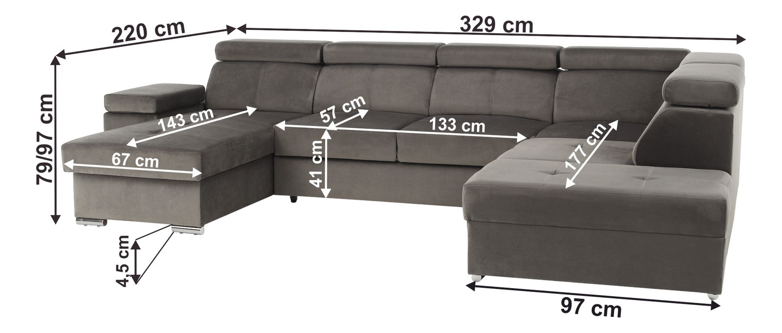 Lamour, stylová a moderní sedačka, která vám přináší komfort a místo k relaxaci. Prostřednictvím ní získáte přímo u vás doma místo, kde si můžete dopřát plnohodnotný odpočinek. Velkorysé rozměry, které nabízí tato sedačka ve tvaru U, v kombinaci s výraznou, ale přitom velmi elegantní barvou šedohnědá Taupe, dodá vašemu obývacímu pokoji exkluzivitu a luxus. Dalším pozitivem je celočalouněné provedení kvalitní látkou KRONOS. Sedačka Lamour disponuje až šesti polohovacími opěrkami hlavy, které lze přizpůsobit v pěti stupních. Polohovací opěrka na ruce vyzvedne její pozitiva na maximum. Lamour disponuje také úložným prostorem. Je rozkládací, pohodlně se na ní vyspí dva lidé. Plocha na spaní dosahuje rozměrů 129x256 cm. Sedačka má 6 kovových nohou ve výšce 4,5 cm od země. Jádro sedačky je tvořeno pružinami falista a pěnou v tloušťce 10 cm. Pro vyšší komfort sezení jsou v opěrkách integrovány elastické pásy a pěna o tloušťce 7 cm. S tímto kvalitním provedením a moderním designem se sedačka Lamour stane ústředním prvkem vaší domácnosti.