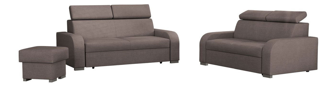 ZobrazitČalouněná souprava Losar 3+2+taburetka je ideální volbou pro ty, kteří hledají pohodlí a styl. Losar je sada čalouněného nábytku, který obsahuje dvě pohovky (dvoulůžkovou a třílůžkovou) a taburetku. Komfort každodenního používání sedací soupravy, podporuje systém nastavitelných opěrek hlavy. Čalouněný nábytek je volně stojící, což znamená, že zadní část nábytku je čalouněna látkou, díky čemuž sedací souprava Losar vypadá skvěle iv prostoru. Rozměry pohovky Losar 3: délka: 200 cm, šířka: 100 cm, výška: 85 - 100 cm Rozměry pohovky Losar 2: délka: 170 cm, šířka: 100 cm, výška: 85 - 100 cm Taburetka Losar: délka: 50 cm, šířka: 5 + dřevotříska + MDF deska, opěradlo: T30/30 pěna, sedák: T30/30 pěna + pružina typu B, T23/15 pěnové opěrky hlavy nerozkládací, plastové nožičky, nastavitelná opěrka hlavy, čalouněné opěradlo pevně připevněné, volně stojící pohov. Záruka: 24 měsíců