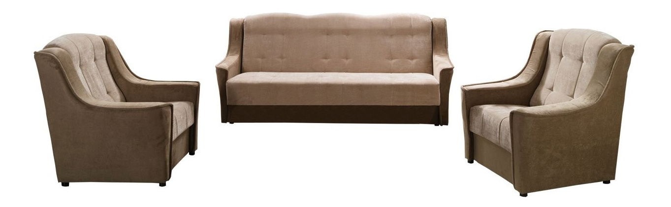 ZobrazitSedací souprava je ideální volbou pro ty, kteří hledají pohodlí a styl. Počítáte při pořádání rodinného posezení s každým centimetrem? Zapomeňte na složité výpočty, pořiďte si pohodlnou sedací soupravu 3+1+1 Margaret a mějte všichni dokonalý komfort. Kdo zaujme místa na křeslech, a kdo bude sedět na pohovce, je jen na vás. Rozměry: pohovka: délka: 217 cm, šířka: 93 cm, výška: 90 cm, ložná plocha: 120x185 cm 2x křeslo: délka: 90 cm, šířka: 83 cm, výška: 93 cm Vlastnosti pohovky: úložný prostor: ano rozkládací: ano dřevěná křesel: dřevěná konstrukce + DTD deska vysokoelastická pěna Záruční doba: 24 měsíců