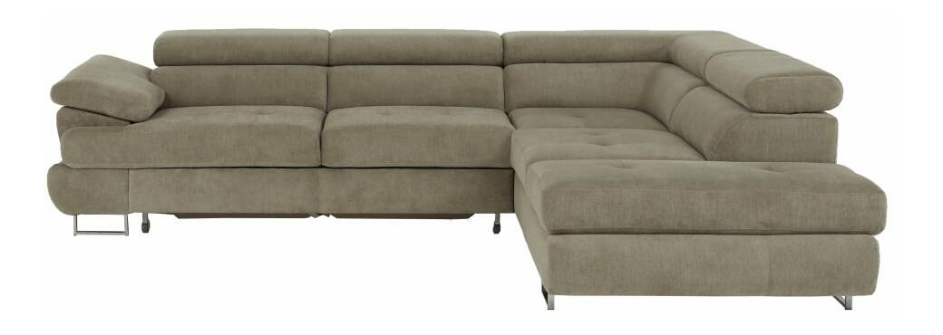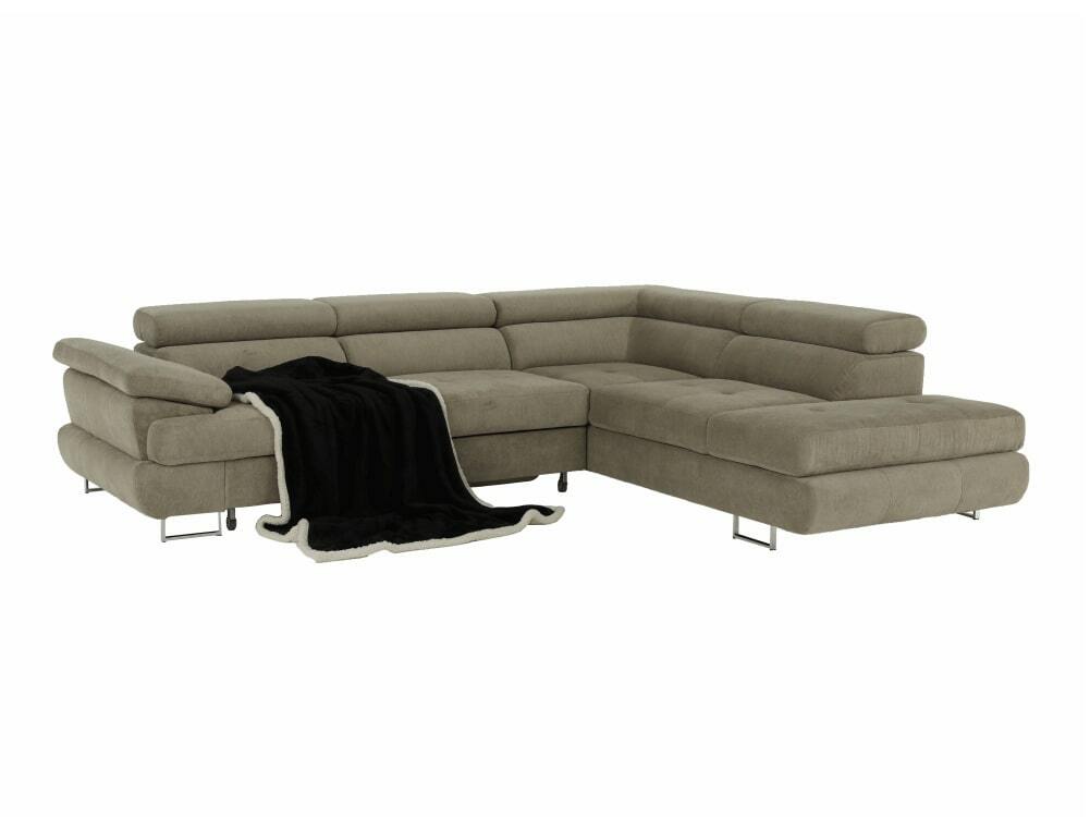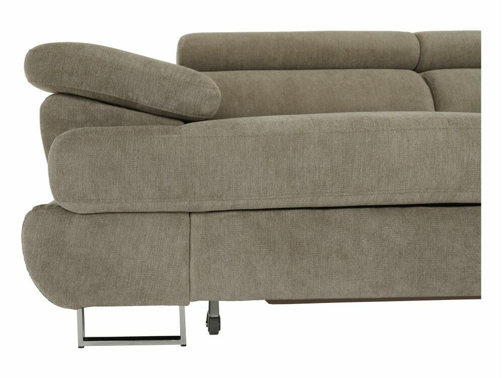 Rohová, Dekorativní prošití, Zajímavá opěrka, 3 polohovací opěrky hlavy, 5 stupňové polohování opěrek, Celočalouněná, Pružinová výplň, Nožičky kovové s povrchovou úpravou chrom, Levé provedení, Dodáváno bez dekorativních polštářků