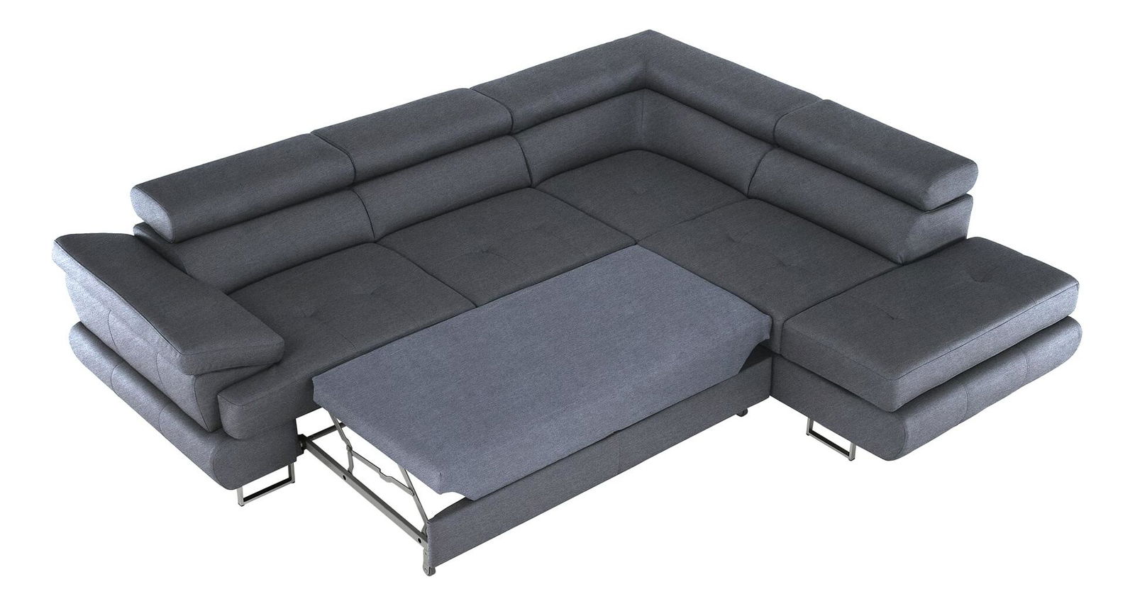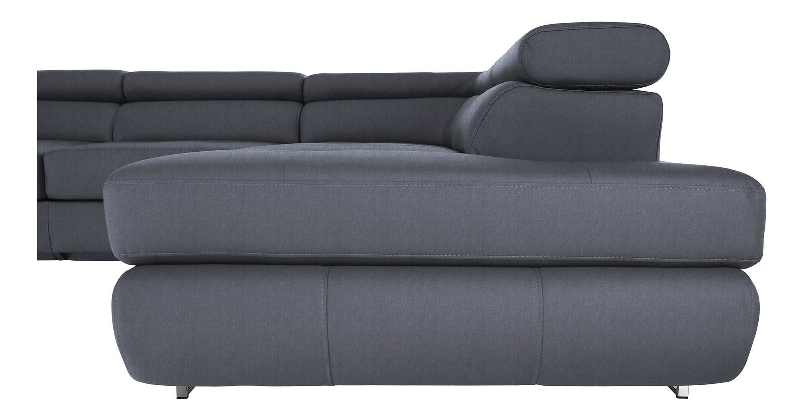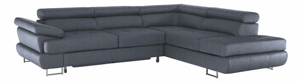 Rohová, Dekorativní prošití, Zajímavá opěrka, 3 polohovací opěrky hlavy, 5 stupňové polohování opěrek, Celočalouněná, Pružinová výplň, Nožičky kovové s povrchovou úpravou chrom, Levé provedení, Dodáváno bez dekorativních polštářků