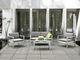Tato sada pohovky a dvou křesel vytvoří dokonalé místo k odpočinku na terase. Její minimalistický design založený na čistých, jednoduchých liniích se bez problémů hodí do jakékoli zahrady. Hustě vyplněné polštáře poskytují maximální pohodlí a zároveň jsou praktické pro použití v zahradě. Jsou čalouněny polyesterem odolným vůči vlhkosti, UV záření a skvrnám. Neutrální šedý odstín čalounění doplní jakékoli prostředí a bude vypadat stylově. Konstrukce sedadel je vyrobena z pevného 100% eloxovaného hliníku, který zaručuje dlouhou životnost nábytku.