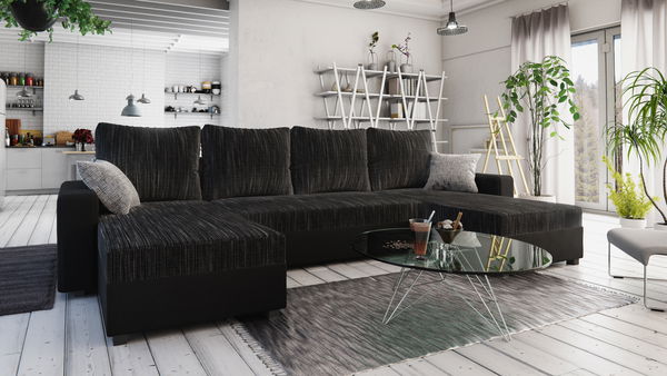 ZobrazitRohová sedačka ve tvaru U Triplite (melírovaná černá + černá) (L) o výšce 85-90 cm a hloubce 160 cm je moderním nábytkem, který dodá vašemu obývacímu pokoji stylový a moderní vzhled. Tato pohodlná sedačka se dá jednoduchým pohybem rozložit a vytvořit tak plochu na spaní o velikosti 295 x 132 cm. falisté konstrukce a PU pěny T80 (8 mm). Sedačka je vybavena praktickými nožičkami a úložným prostorem. /34 kg, balík č. 2 - 60x132x70 cm/45 kg, balík č. 3 - 40-70x160x80 cm/34 kg a balík č. 4 - 50x90x50 cm/15 kg.
