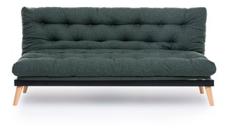 Rozkládací pohovka Sakotta (zelená + dřevo)