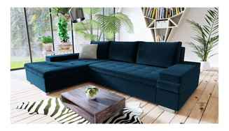 Modré rohové sedací soupravy s úložným prostorem