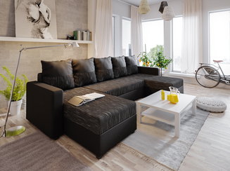 Rohová pohovka Ascend L (černá + béžová) (L)