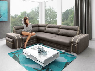 Rohová sedačka U Terazuro Bis (tmavě šedá + černá) (s úl. prostorem) (L)