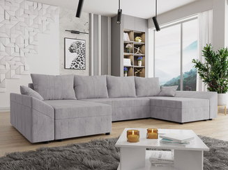 Větší flexibilita k sezení je pravděpodobně jednou z hlavních výhod sedacích souprav ve tvaru U. Výhodou jsou tři rovné strany a dva rohy, což znamená nejen dostatek prostoru k sezení, ale také možnost různých poloh k ležení. Výhodou větších modelů je, že si na ně v leže pohodlně odpočinou i dvě osoby. Přináší spoustu místa k sezení pro hosty a pokud je její vnitřek efektivně využit na dodatečný úložný prostor, její koupě je opravdu všestrannou volbou. Úložný prostor se nachází obvykle v otomanu nebo pod hlavní sedací částí. Otevírá se buď vyklápěním nebo vysouváním. V závislosti na tom, kolik úložného místa potřebujete a co do něj budete ukládat, si všímejte zejména jeho velikosti.