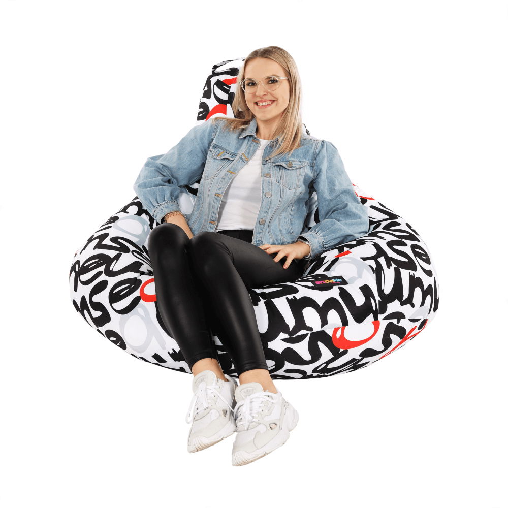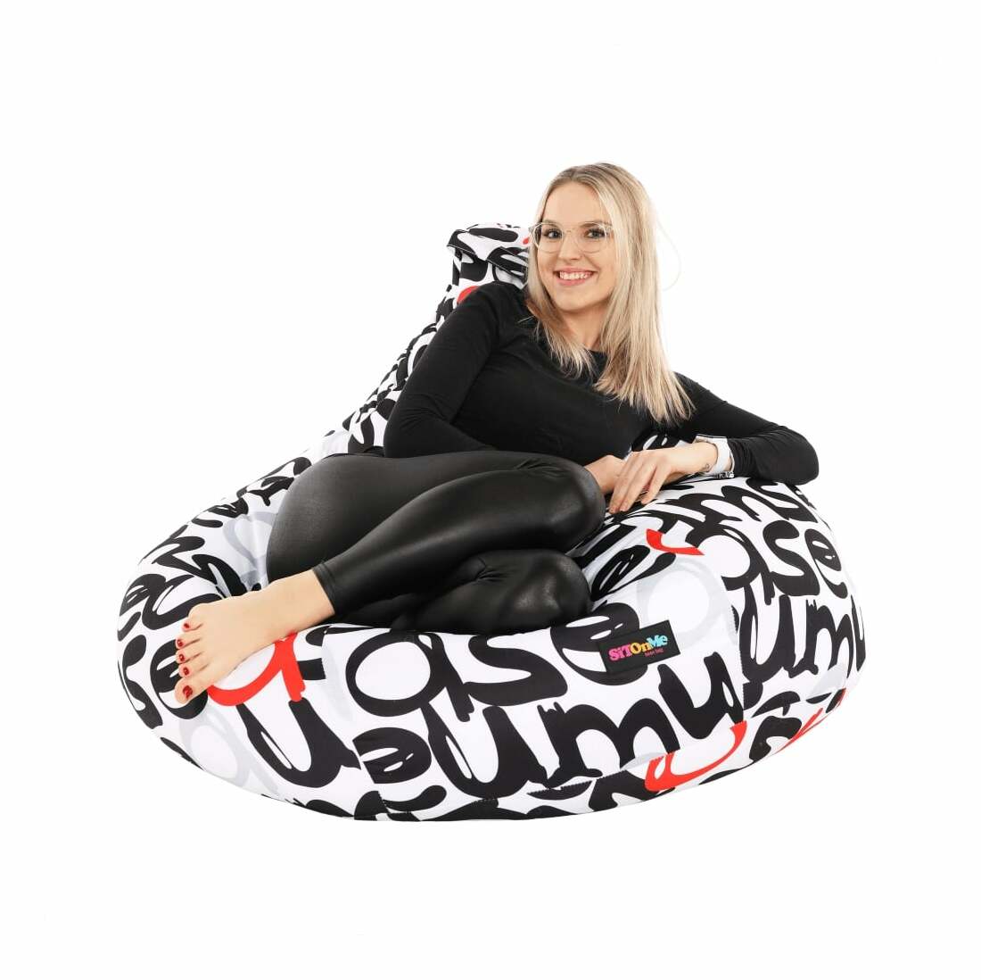 Sedací vak Blaze (bílá + černá + šedá + červená vzor)