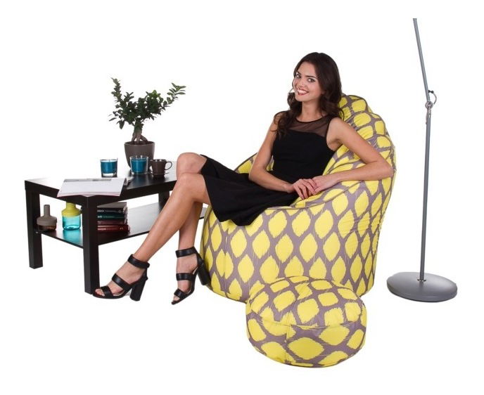 Sedací vak s taburetkou Exclamation (žlutá + hnědá)