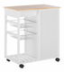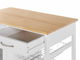 Kuchyňský vozík je užitečným doplňkem nejen v kuchyni, ale také v jiných místnostech vaší domácnosti. Prostorné zásuvky a skříňka jsou vhodné pro uskladnění příborů, lahví, sklenic a mnoho jiného. Vrchní část vozíku poskytuje prostor pro nádobí a může také sloužit jako servírovací stůl. Otevřené regály jsou perfektním místem pro uschování kapesníků a ubrousků. Vozík je bílé barvy, vyrobený z dřevovláknité desky střední hustoty s kontrastním vrchem ze světlého borového dřeva. Kolečka na spodku vozíku vám umožňují snadnou manipulaci iv případě, že je vozík plně naložen.