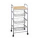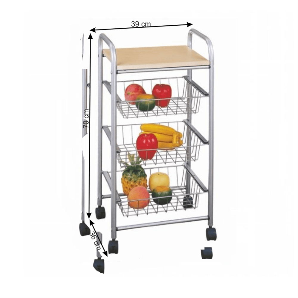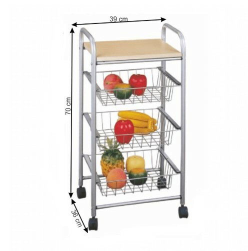 Praktický servírovací stolek Campo bude skvěle sloužit při obsluhovahí hostů ať už u Vás doma nebo v hotelu či restauraci. Dvě kolečka ze čtyř jsou vybavena brzdami. V horní části je polička z MDF desky, pod kterou jsou umístěny tři drátěné košíčky.