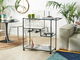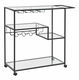 Kuchyňský vozík v minimalistickém designu je navržen s ohledem na funkčnost. Je vybaven držákem na láhve a sklenice, takže může posloužit jako plnohodnotný barový vozík nebo jako servírovací vozík pro podávání jídel. Dostatek úložného prostoru poskytují čtyři otevřené plochy, přičemž kolečka s bezpečnostní brzdou zajišťují, že bez ohledu na zatížení je přemisťování vozíku snadné.