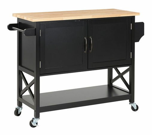 Tento kuchyňský vozík je skutečnou skandinávskou klasikou, která krásně zapadne do každého moderního interiéru. Vrchní deska stolu je vyrobena ze světlého dřeva a skříňka z odolné desky MDF. Do prostorné skříňky se vejde veškeré nejpotřebnější příslušenství, zatímco police poslouží jako vitrína pro vaše oblíbené dekorativní kousky. Vozík lze snadno přesouvat díky vestavěným kolečkům. Tento všestranný kousek nábytku můžete použít jako prostor pro odkládání nádobí, úložný prostor v koupelně nebo jako kuchyňský ostrůvek.