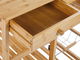 Tento kuchyňský vozík v rustikálním stylu je dokonalým doplňkem do každé domácnosti. Je nejen praktický, ale i dekorativní. Nabízí dostatek úložného prostoru do malých interiérů a díky kolečkům lze s ním snadno manipulovat a přesouvat po místnosti. Dřevěná deska vozíku výborně poslouží například jako stolní deska nebo pro vystavení misky s ovocem. Zásuvka je ideální pro uložení nádobí, zatímco kovové košíčky jsou skvělým řešením pro uložení lehčích kuchyňských předmětů.