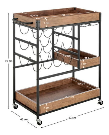 Servírovací vozík, dub tmavý/černá, PORTIS