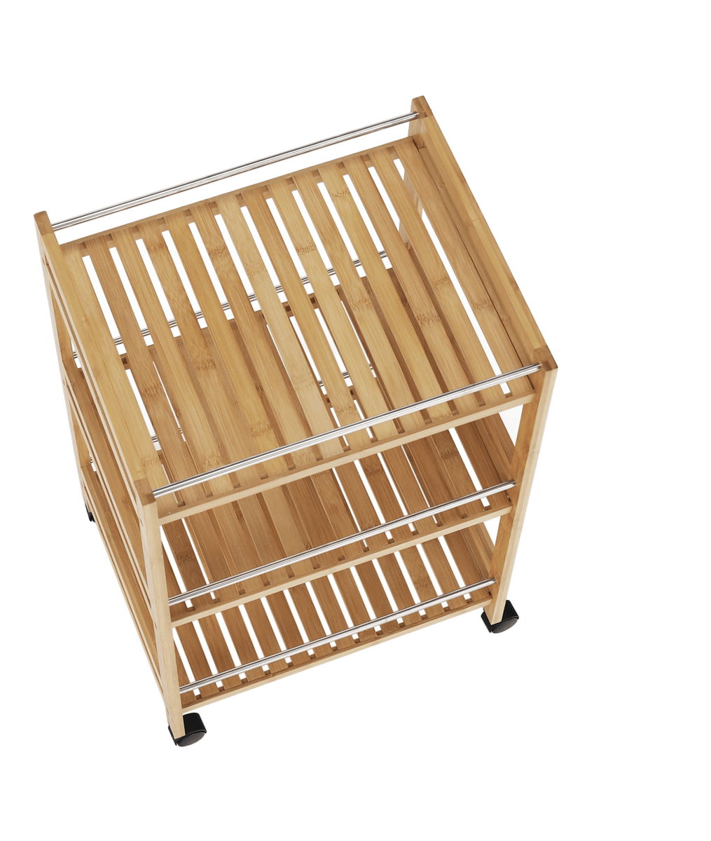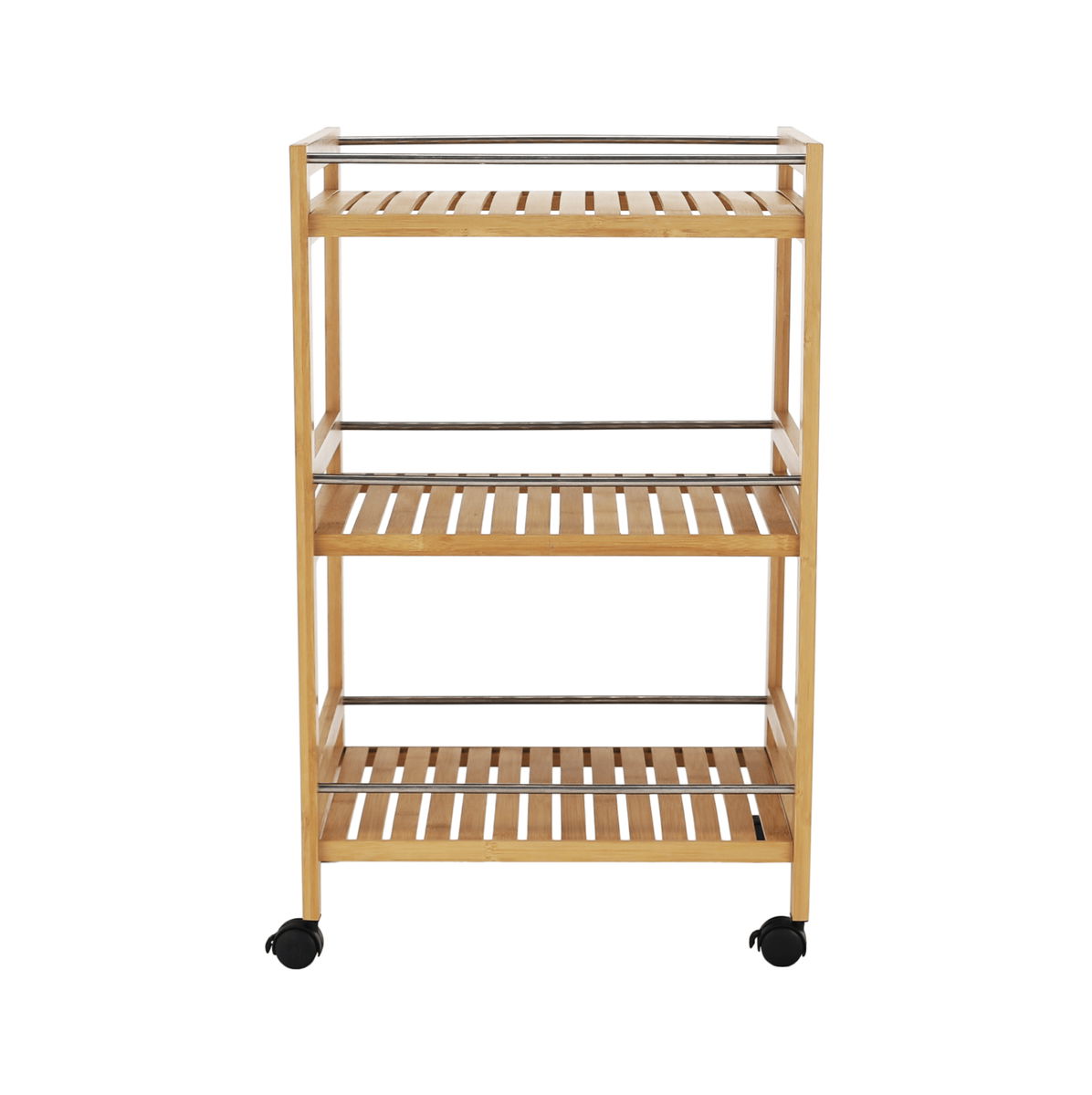 Tento praktický servírovací stolek je výborným společníkem na rodinné oslavy či posezení s blízkými přáteli. Vhodný je do kuchyně i spíže. Už nemusíte přenášet všechno ručně. V případě potřeby jej lze naložit dobrotami a jednoduše přemístit. Během grilování na terase můžete jeho tři police využít jako odkládací prostor pro potraviny či nádobí. Díky brzdám na dvou kolečkách zůstane stabilně stát.