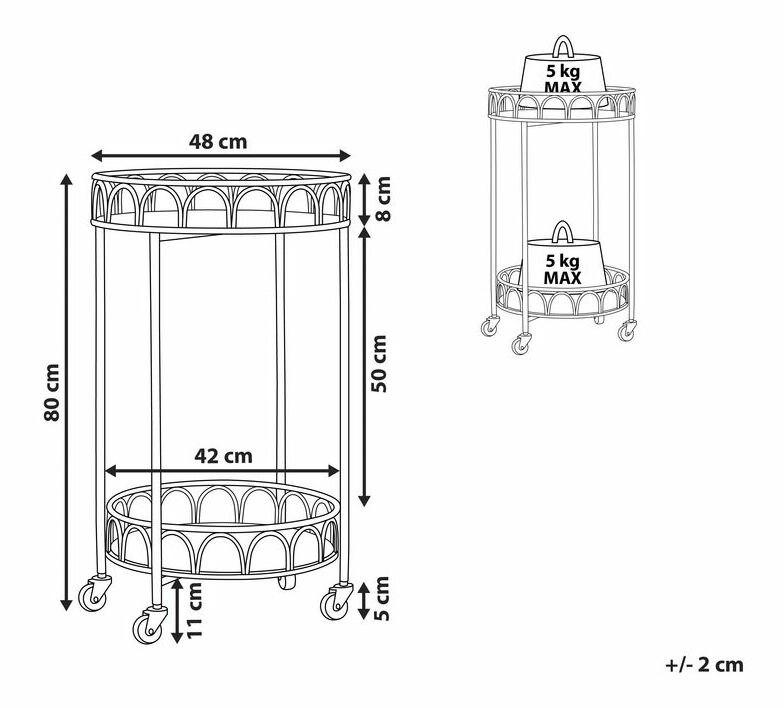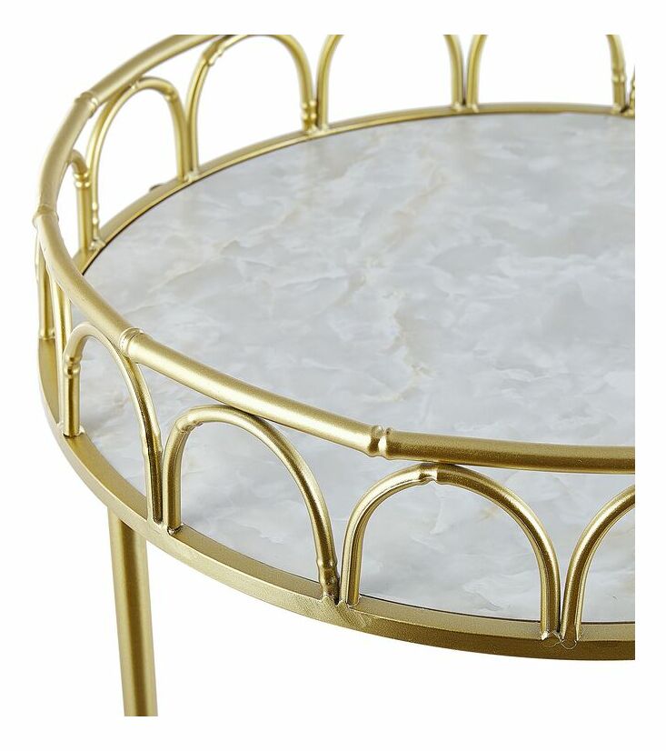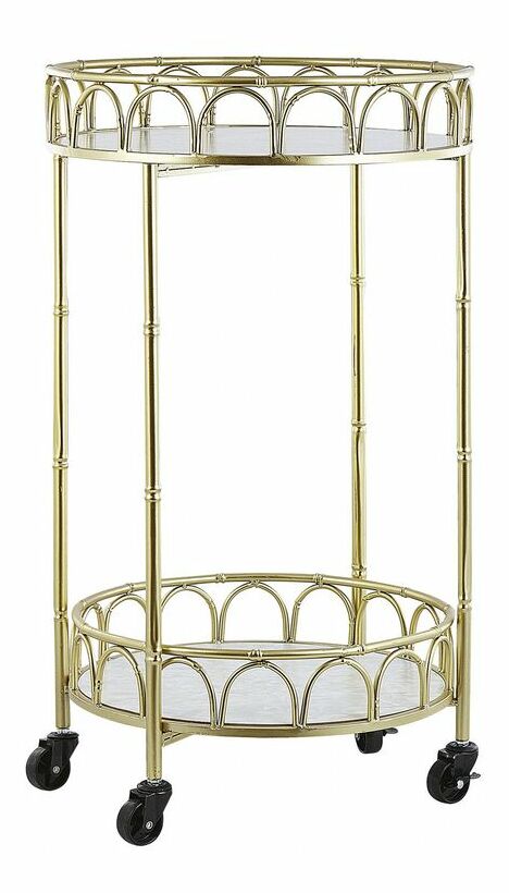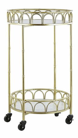Dodejte svému domovu půvab s tímto stolkem na kolečkách, který lze také použít jako kuchyňský vozík. Pochlubte se svými knihami či zarámovanými fotografiemi na vrchní polici, a tu spodní použijte například pro uložení sklenic či lahví. Pozlacený železný rám v kombinaci s prkny s mramorovým efektem z něj činí atraktivní doplněk do obývacího pokoje, ale zároveň bude krásně vynikat v každé elegantně laděné kuchyni. S tímto stylovým stolkem vnesete do každého prostoru trendový retro vzhled.