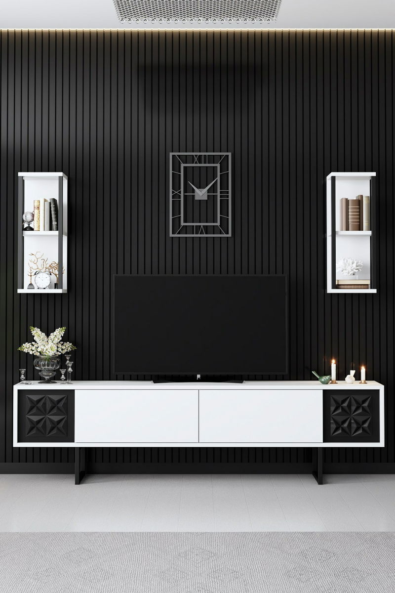 Sestava nabytku do obývacího pokoje Buon 2 (Bílá + Černá)