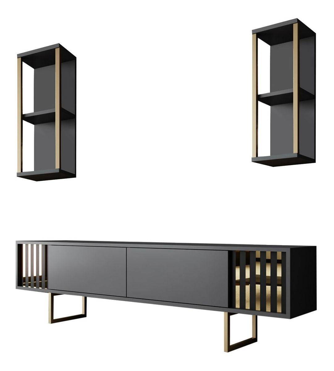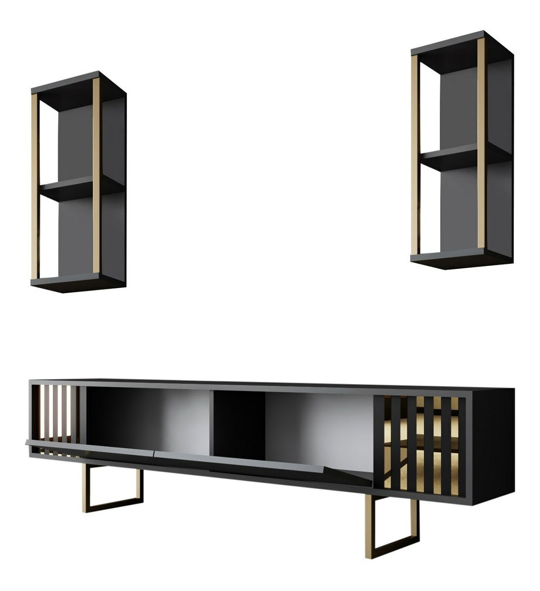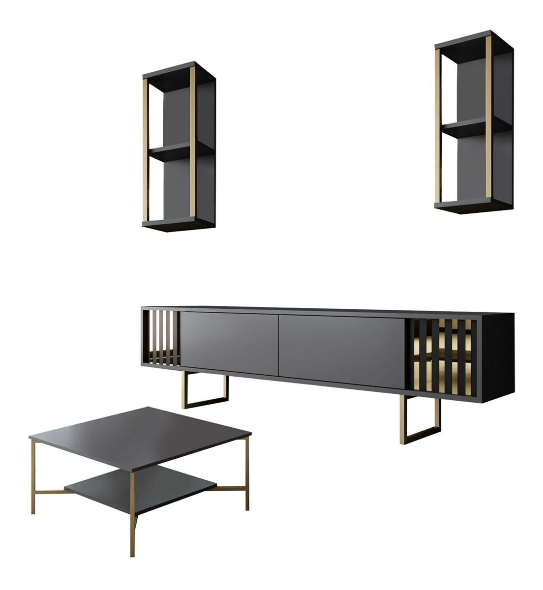 Sestava nábytku do obývacího pokoje Chromatic (Antracit + Zlatá)