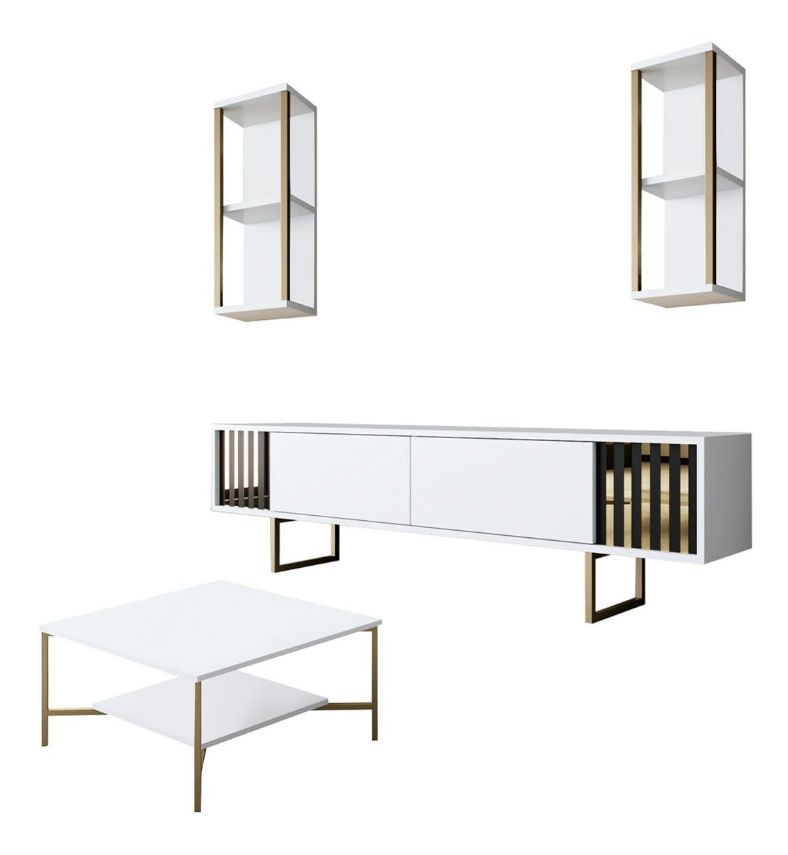 Sestava nábytku do obývacího pokoje Chromatic (Bílá + Zlatá)