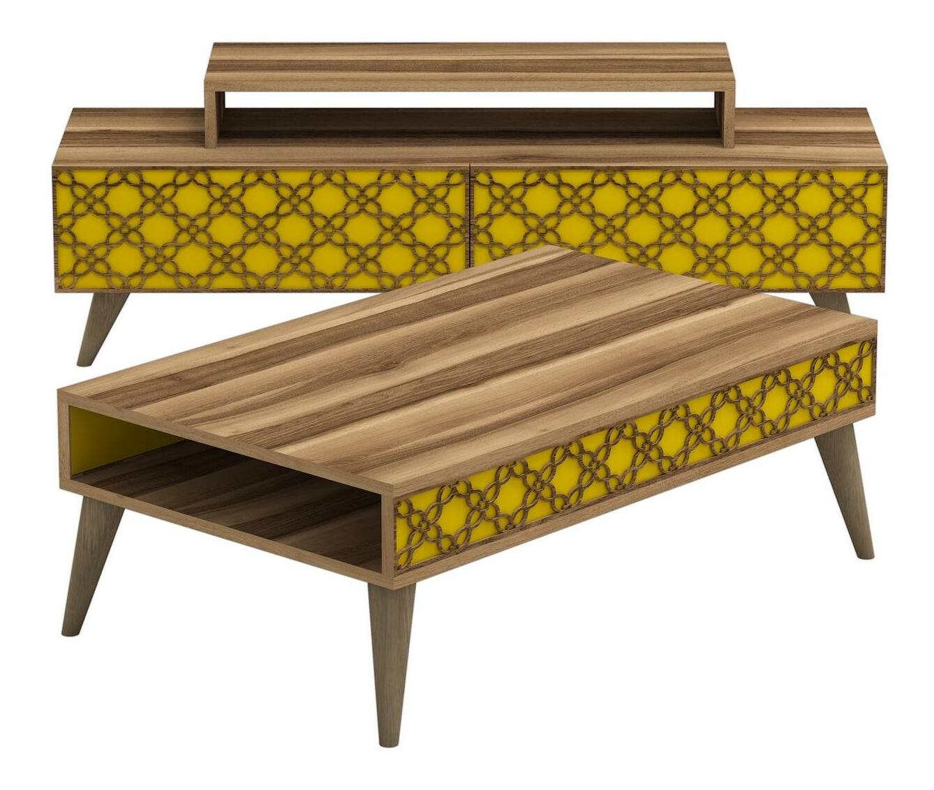 Sestava nabytku do obývacího pokoje Clementine (ořech + žlutá)
