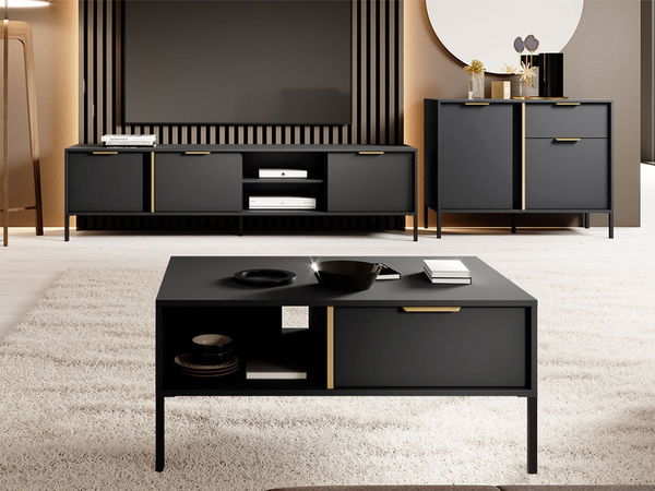ZobrazitNábytek do obývacího pokoje je kvintesencí moderního designu a praktičnosti. Jejich interiér byl pečlivě optimalizován, což umožňuje pohodlné uspořádání různých druhů předmětů na policích a zásuvkách. Komoda na nožičkách skvěle zapadne do prostoru obývacího pokoje i jídelny. Televizní skříňka uspořádá prostor kolem televizoru. Praktické odkládací přihrádky vám pomohou skrýt příslušenství a multimediální zařízení a zároveň k nim zachovat přístup. Skříňka zaujme svým minimalistickým designem, který dokonale ladí s moderním stylem interiérového designu. Konferenční stolek z kolekce je nejen pohodlným místem na šálek kávy nebo oblíbené knihy, ale také působivým dekorativním prvkem. Jeho designová forma a solidní zpracování z něj dělají ústřední bod oddechové zóny.