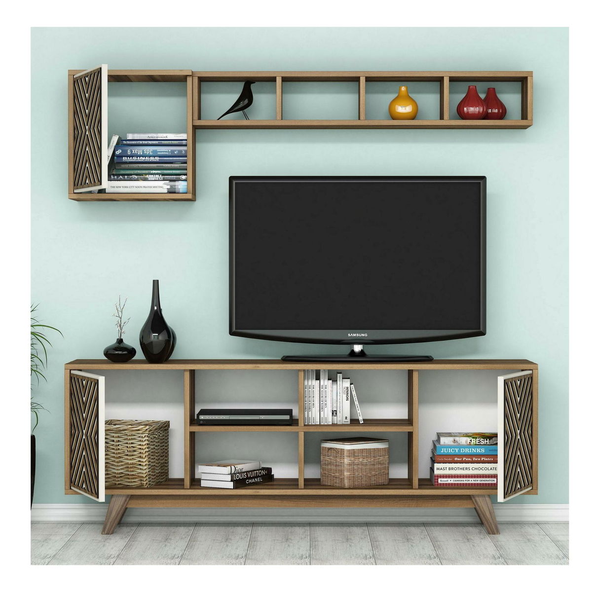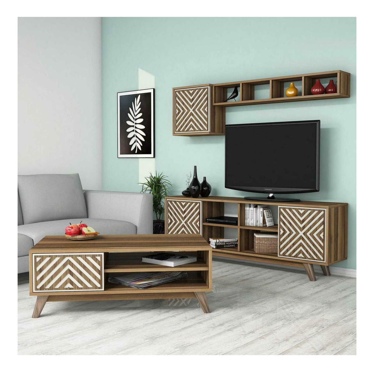 Sestava nábytku do obývacího pokoje Ivonne (ořech + krémová)