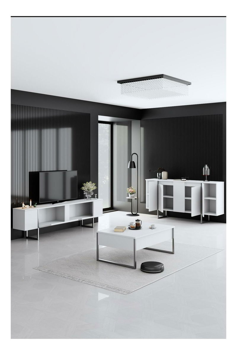 Sestava nábytku do obývacího pokoje Luna 1 (bílá + stříbrná)
