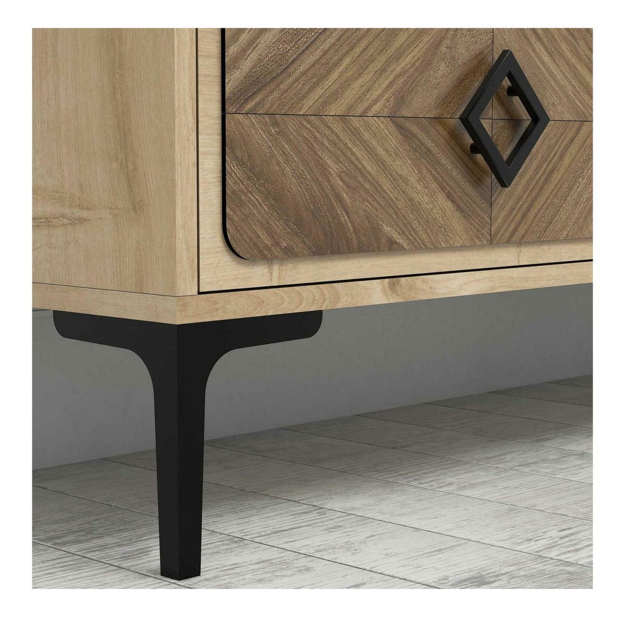 tloušťka: 18 mm, velikost TV jednotky: šířka: 180 cm, výška: 52 cm, hloubka: 35 cm, velikost nástěnné police: šířka: 27,4 cm, výška: 84 cm, hloubka: 20 cm, (2 kusy) velikost konferenčního stolku: šířka: 105 cm, výška: 34,6 cm, hloubka: 60 cm