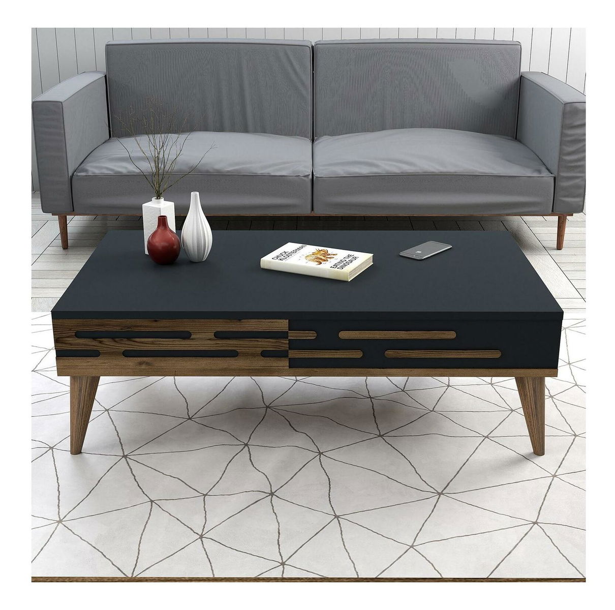 Sestava nábytku do obývacího pokoje Valencia (ořechová + antracit)