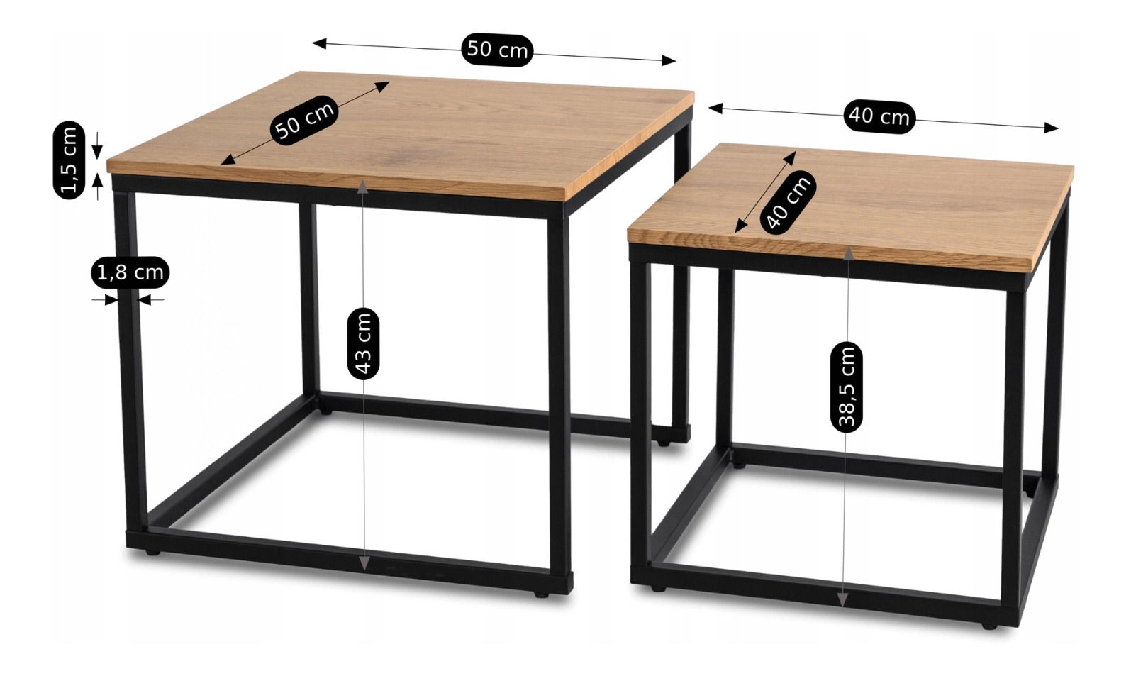 Set 2 konferenčních stolků Climas (dub zlatý + černá)