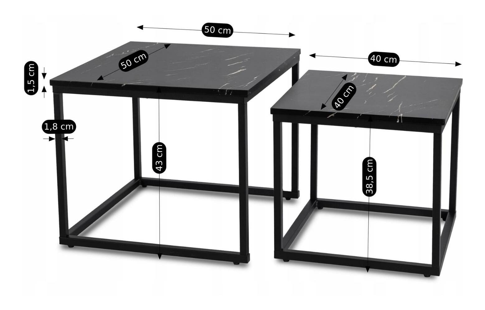 Set 2 konferenčních stolků Jospin (mramor černý)