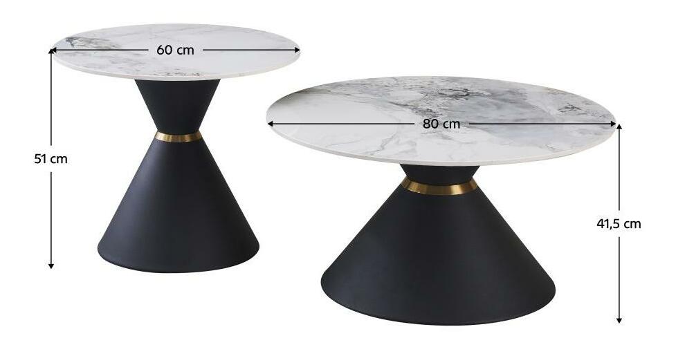 Set 2 konferenčních stolků Mavazo (mramor bílý + černá + zlatá)