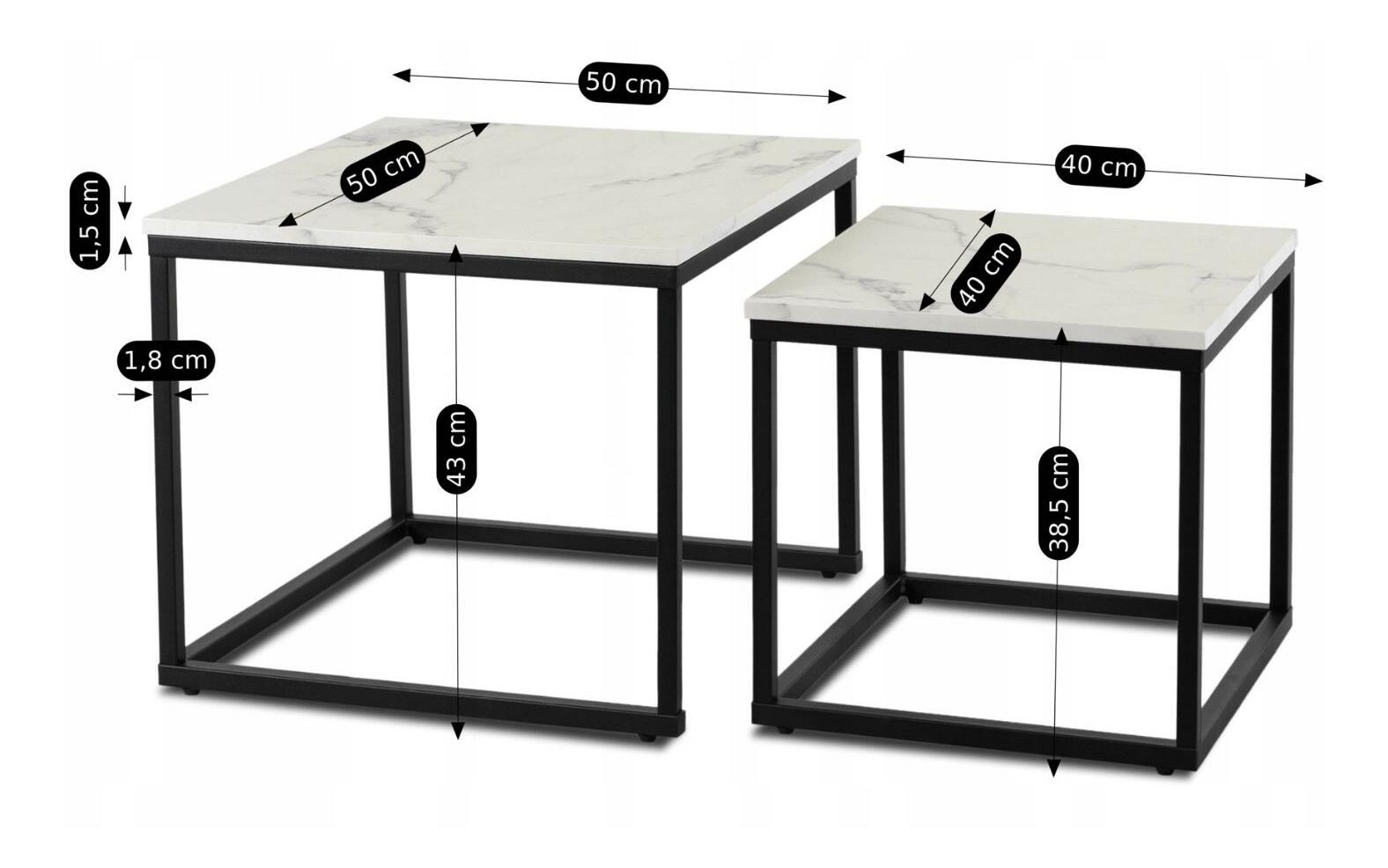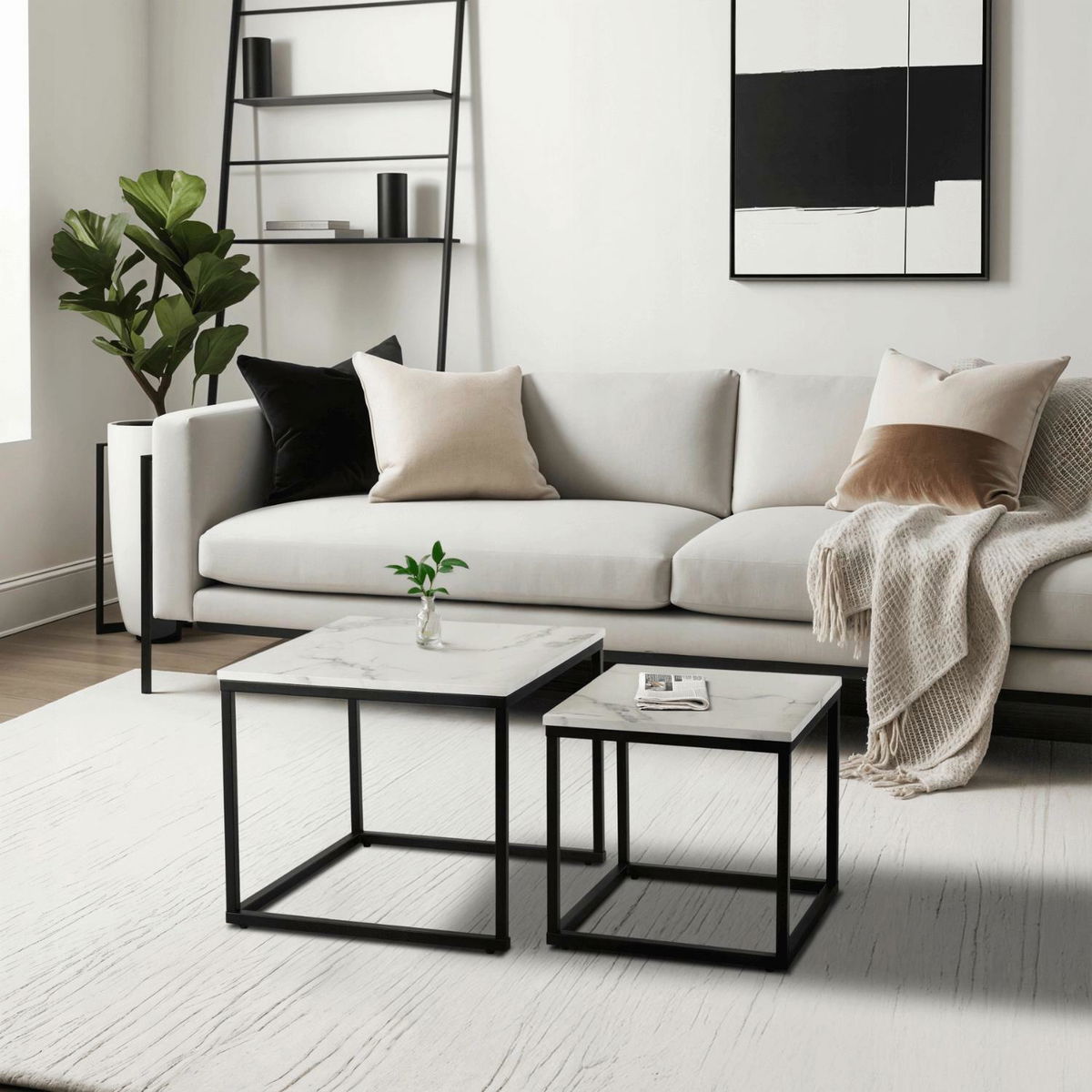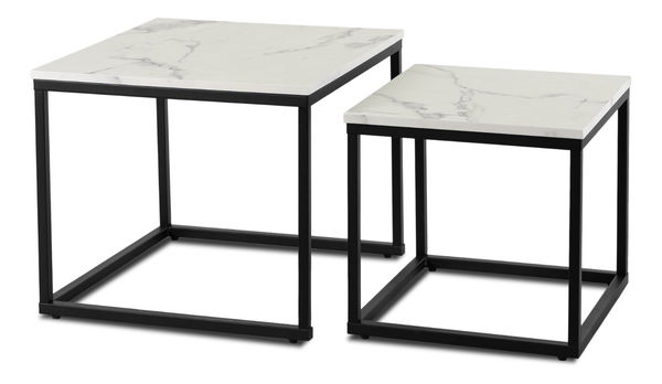 Set 2 konferenčních stolků Ocupa (mramor bílý + černá)
