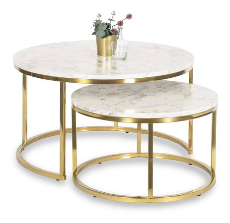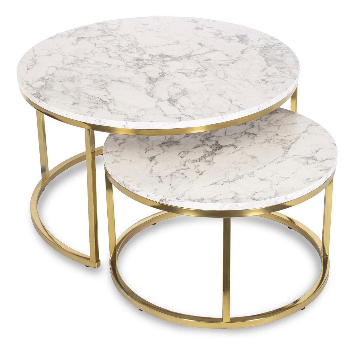 Set 2 konferenčních stolků Oponia Max (mramor + zlatá)