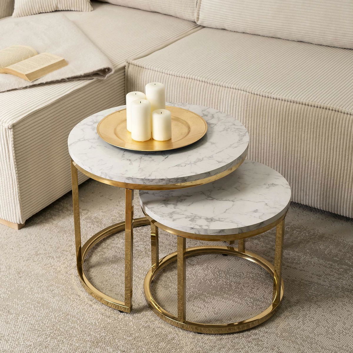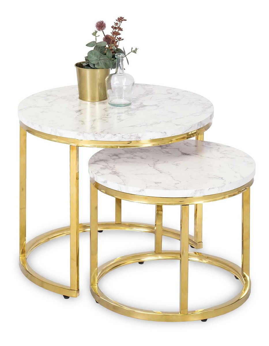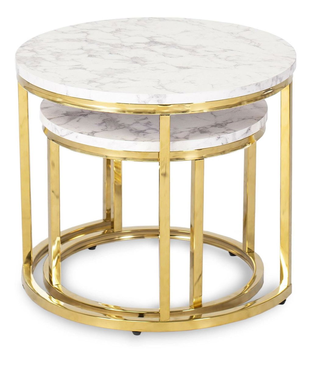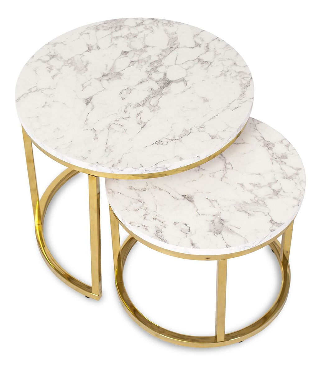 Set 2 konferenčních stolků Oponia (mramor + zlatá)