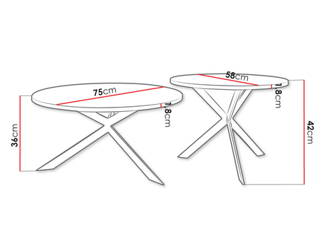 Rokelas kulaté konferenční stolky jsou sestavou dvou moderních stolků. Originální vzhled tohoto dua zajišťují především designové nohy. Efektní tvar základny je jedinečnou ozdobou obývacího pokoje. Příjemně osvěží dekor, ba co víc, ve správné společnosti umocní i industriální charakter aranžmá. Toto harmonické duo se skládá z velké ao něco menší varianty stejného modelu. Různé výšky obou konferenčních stolků jsou módním detailem, který vypadá skvěle v interiérech.