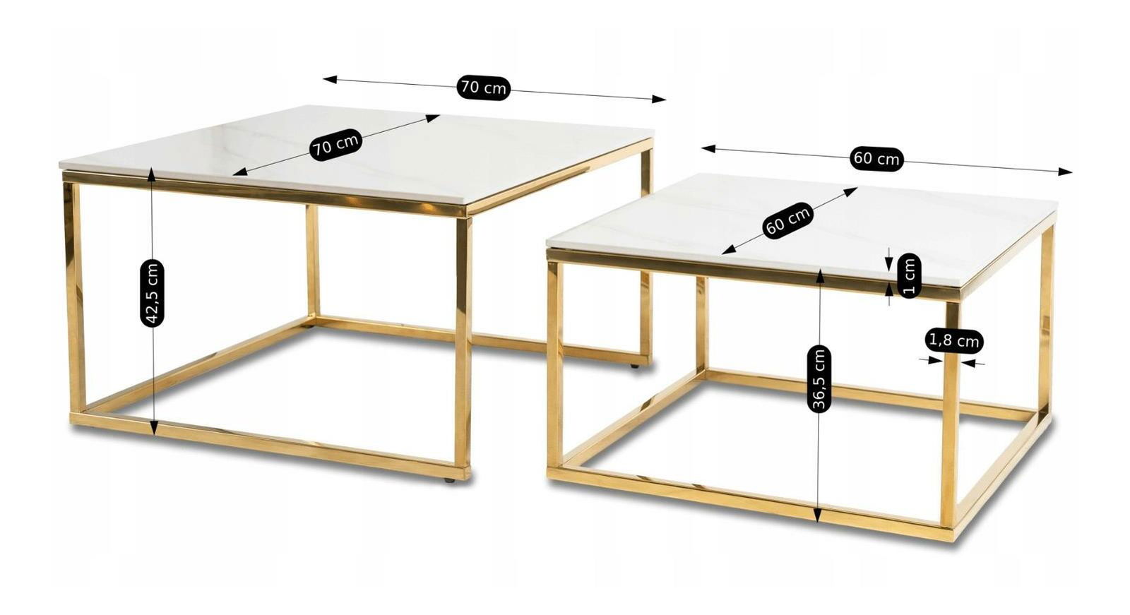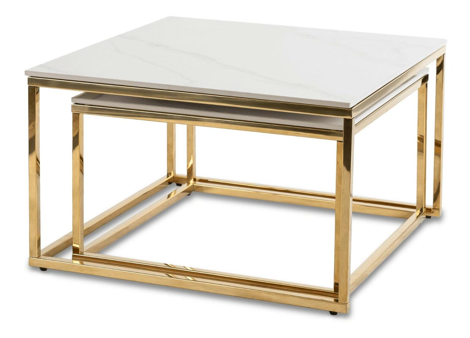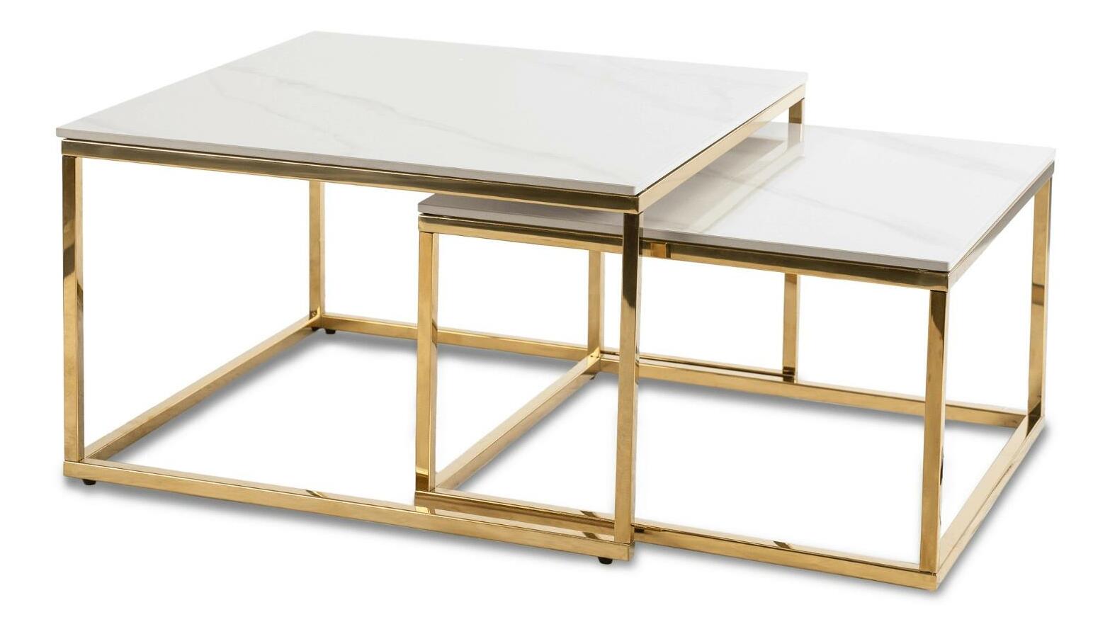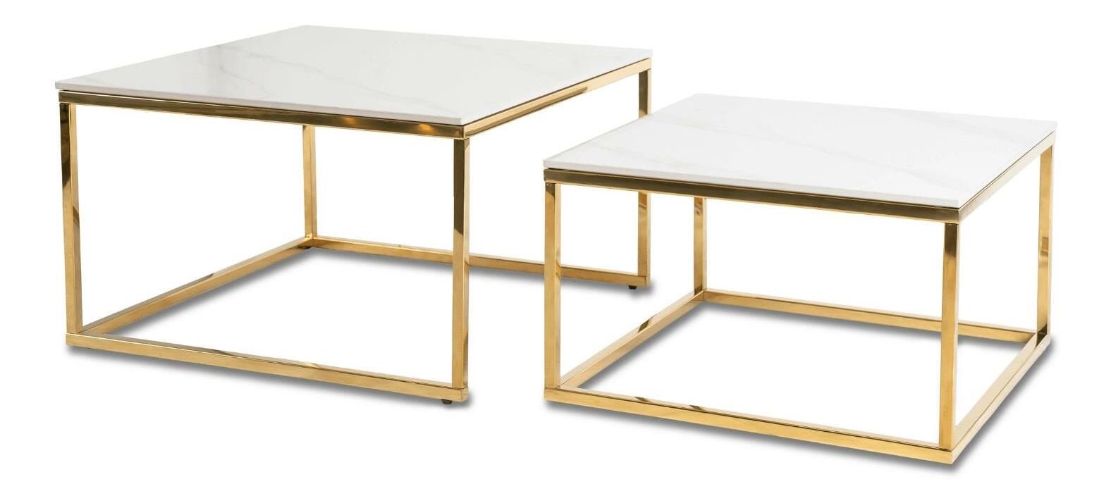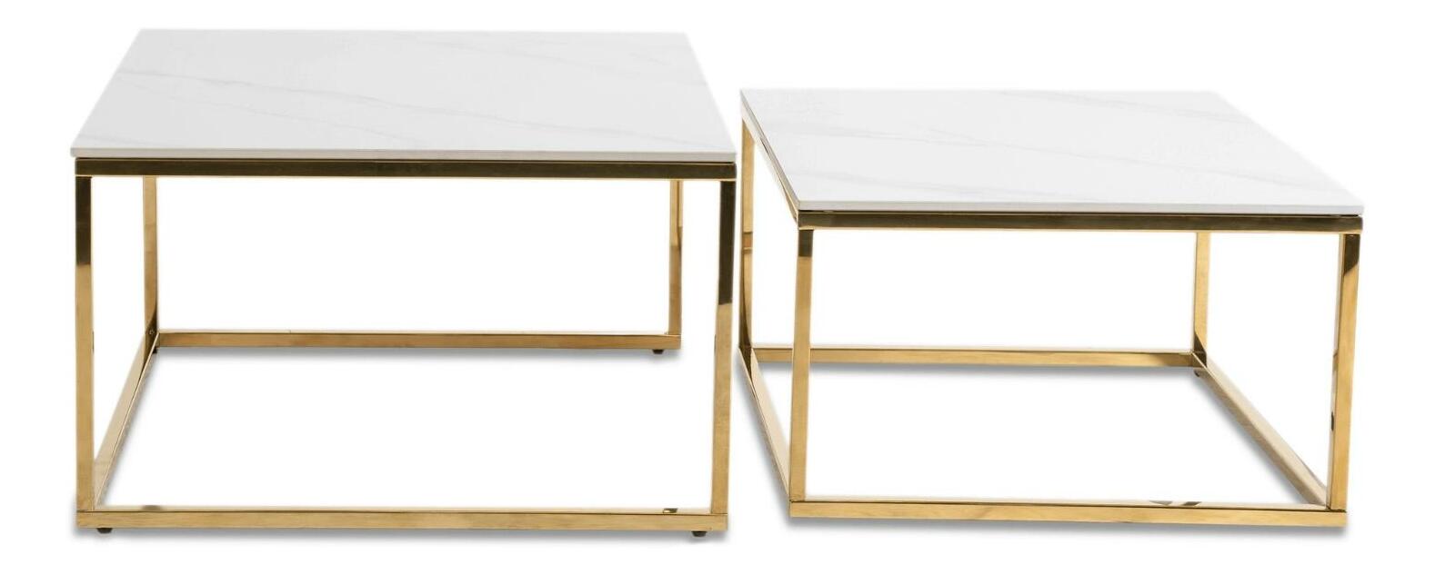Set 2 konferenčních stolků Texarkana (mramor bílý + zlatá)